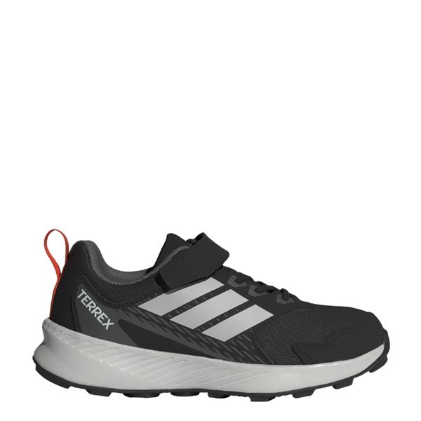 Introducing the Adidas Kids Terrex Tracefinder Cf C Trainers - Black, designed to accompany young adventurers on their daily escapades. These trail running shoes are perfect for children who love to explore, combining style and functionality in a single package.