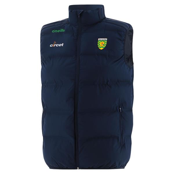 Discover the O’Neills Donegal GAA Kid's Padded Gilet Marine. Featuring a showerproof finish, this gilet keeps you dry without the bulk. The funnel collar offers extra neck coverage, while the stretch binding cuffs and waistband ensure a comfortable, flexible fit. The two zipped pockets provide secure storage, and the stripe detail offers a bold, athletic look. Show your county pride with our Hydra Padded Gilet, designed for layering and performance in unpredictable weather!