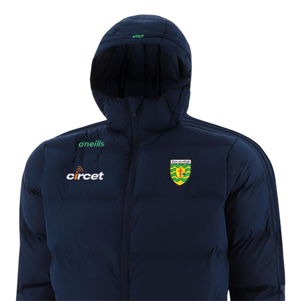 Discover the O’Neills Donegal GAA Kids Hydra Padded Jacket Marine. Perfect for match day, travel, or everyday wear, this jacket blends function and county pride seamlessly. The showerproof outer layer helps shield you from light rain and wind, while the padded insulation keeps warmth in without adding bulk. The high funnel collar offers extra coverage and protection, and the elasticated cuffs ensure a secure fit. With two zipped pockets for storing your essentials and stripe detailing along the sleeves, our Hydra Padded Jacket provides a clean, sporty look.