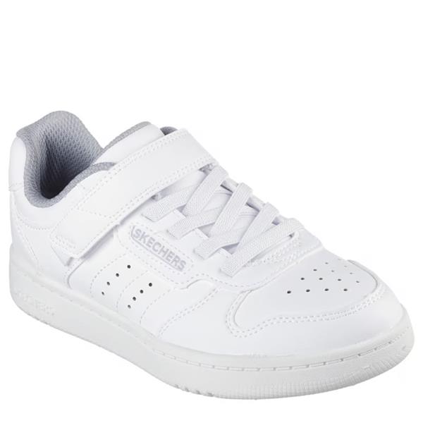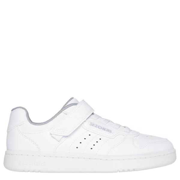Introducing the Skechers Infants Quick Street Shoes - White, designed for both comfort and style. Perfect for little explorers, these shoes combine practical features with a trendy court style, making them an excellent choice for everyday wear.
