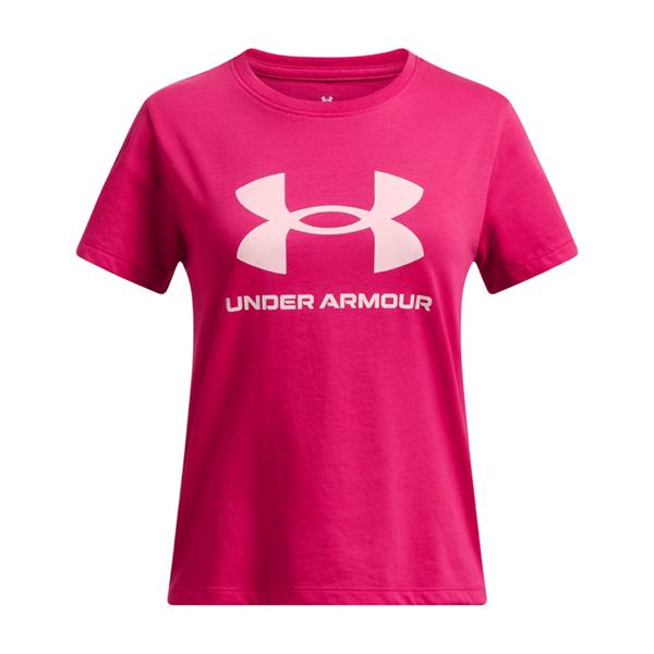 The Under Armour Girls Big Logo Tshirt - Pink is the perfect combination of style and performance for active young girls. Crafted for comfort and durability, this t-shirt is designed to keep up with every move. Featuring a bold logo graphic, it’s not only fashionable but also a symbol of quality that parents trust.